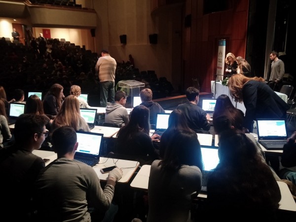 Η εκδήλωση εμπλουτίστηκε με τη συμμετοχή των μαθητών του 3ου Γυμνασίου Σερρών, οι οποίοι με την καθοδήγηση της διευθύντριας του σχολείου, κυρίας Χρύσας Αραπάκη, συμμετείχαν ενεργά σε όλη τη διάρκεια της εκδήλωσης. Συγκεκριμένα. κατά τη διάρκεια των ομιλιών, 20 μαθητές παρέμειναν στη σκηνή και περιηγήθηκαν στην πλατφόρμα σε φορητούς ηλεκτρονικούς υπολογιστές που εξασφάλισε η κ. Αραπάκη. Την ίδια στιγμή, συμμαθητές τους συνέβαλαν στην ομαλή διεξαγωγή της εκδήλωσης μοιράζοντας ενημερωτικό υλικό και καθοδηγώντας τους προσκεκλημένους τόσο εντός του θεάτρου όσο και στο χώρο της υποδοχής, στον οποίο η κ. Αραπάκη είχε φροντίσει να υπάρχουν καφές και κεράσματα.