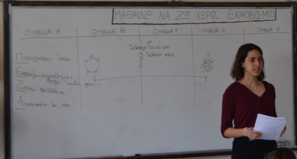 Η παρέμβαση στο 4ο Γυμνάσιο Παλαιού Φαλήρου ολοκληρώθηκε με τη συμμετοχή 20 μαθητών της Β’ Γυμνασίου στο εκπαιδευτικό πρόγραμμα «Μαθαίνω να Ζω Χωρίς Εκφοβισμό» το οποίο υλοποιήθηκε για πρώτη φορά σήμερα. Στα πλαίσια της εκπαίδευσης, τα παιδιά μέσω θεωρίας, roleplay, βιωματικών ασκήσεων και εργασιών σε ομάδες έμαθαν πώς μπορούν να είναι περισσότερο διεκδικητικά αναφορικά με τα δικαιώματά τους, να υπερασπίζονται τον εαυτό τους σε δύσκολες/εκφοβιστικές καταστάσεις στο σχολείο και να τις διαχειρίζονται πιο αποτελεσματικά. Με τη βοήθεια της εκπαιδεύτριας – ψυχολόγου, Βέρας Πρατικάκη, συμμετείχαν ενεργά καθ’ όλη τη διάρκεια της εκπαίδευσης εκφράζοντας απορίες, απόψεις και εμπειρίες.