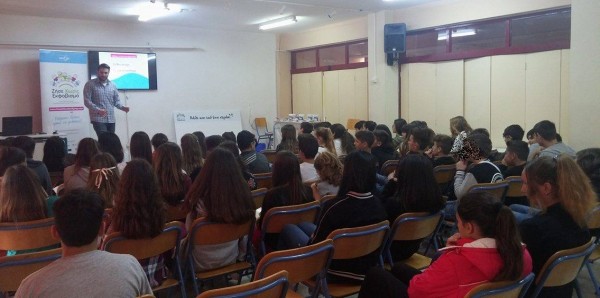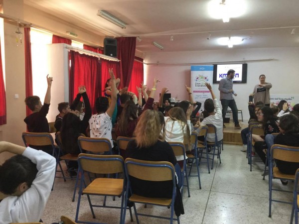 Η επίσκεψη ξεκίνησε με μια διαδραστική παρουσίαση για τον εκφοβισμό. Οι μαθητές συμμετείχαν ενεργά και με τη βοήθεια τους, συζητήσαμε τις διάφορες μορφές εκφοβισμού και τις συνέπειες τους, εντοπίσαμε τις διαφορές ανάμεσα στο πείραγμα μεταξύ φίλων και του εκφοβισμού και προβληματιστήκαμε σχετικά με το πώς αισθάνεται ένα άτομο το οποίο εκφοβίζεται. Εστιάσαμε επίσης στους λόγους που μερικοί μαθητές ασκούν εκφοβισμό και εξετάσαμε πιθανούς τρόπους αντιμετώπισης εκφοβιστικών συμπεριφορών. Όλοι μαζί συμφωνήσαμε ότι «Υπάρχουν λύσεις, αρκεί να μιλήσεις» και πως κανένας δεν αξίζει να εκφοβίζεται.
