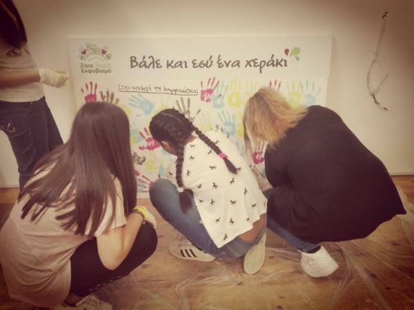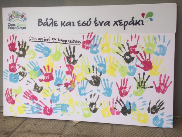 Μετά φορέσαμε γάντια και με τη βοήθεια εθελοντών – μαθητών, κάθε μαθητής άφησε το προσωπικό του αποτύπωμα στον καμβά δεσμευόμενος συμβολικά «στην αποδοχή της διαφορετικότητας». Όλοι οι μαθητές συμφώνησαν να στέκονται περισσότερο κοντά σε μαθητές οι οποίοι εκφοβίζονται και να αποδέχονται τους συμμαθητές τους όσο διαφορετικοί και αν είναι.