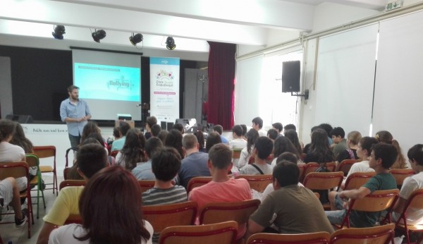 Η επίσκεψεις μας στα 2 σχολεία ξεκίνησαν με μια διαδραστική συζήτηση για τον εκφοβισμό. Οι μαθητές της Α’ Γυμνασίου ήταν οι βασικοί πρωταγωνιστές της δράσης συμμετέχοντας με τις απαντήσεις και τις απόψεις τους. Με την πολύτιμη βοήθειά τους συζητήσαμε για τις διάφορες μορφές εκφοβισμού, τις διαφορές του με το πείραγμα και εστιάσαμε στην αξία της αλληλοϋποστήριξης και της εύρεσης συμμάχων για την εκφοβιστικών συμπεριφορών. Αυτό ήταν ένα σημαντικό σημείο της συζήτησης καθώς καταλήξαμε πως όσο μικρότερη ανοχή δείχνουμε σε τέτοιες συμπεριφορές τόσο λιγότερα περιστατικά εκφοβισμού θα εμφανίζονται στο χώρο του σχολείου. Στη συνέχεια μιλήσαμε για πρακτικούς τρόπους αντιμετώπισης εκφοβιστικών συμπεριφορών και συμφωνήσαμε όλοι μαζί -με μια φωνή- πως «Υπάρχουν λύσεις, αρκεί να μιλήσεις»!