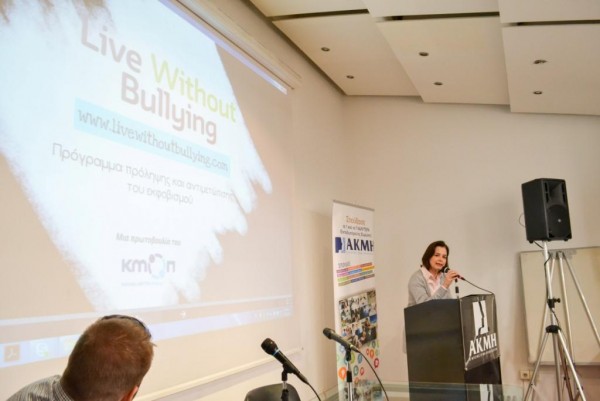 Κατά τη διάρκεια των χαιρετισμών πραγματοποιήθηκε η παρουσίαση του προγράμματος ΄΄ Live without Bullying ΄΄ από την Πρόεδρο του Κέντρου Μέριμνας Οικογένειας και Παιδιού, κα. Αντωνία Τορρένς.