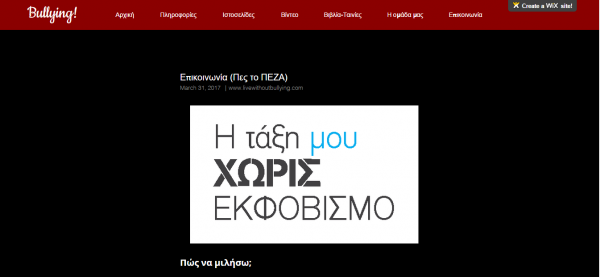 Στο site τους μπορεί ο καθένας να βρει βασικές πληροφορίες σχετικά με το φαινόμενο του εκφοβισμού, αξιόπιστες ιστοσελίδες, ένα βίντεο που έχουν φτιάξει οι ίδιοι, προτεινόμενα βιβλία και ταινίες αλλά και τους λόγους για τους οποίους επέλεξαν να ασχοληθούν με το συγκεκριμένο θέμα. Για περισσότερα πατήστε εδώ.