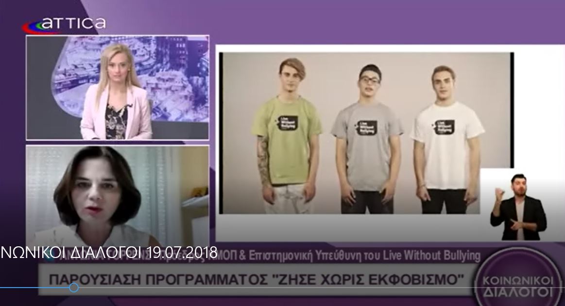 Συνέντευξη της Προέδρου του ΚΜΟΠ, Δρ. Αντωνία Τορρένς στο Attica Tv και στην Σωσώ Χονδρογιάννη, εκπομπή Κοινωνικοί Διάλογοι στις 19/7/2018